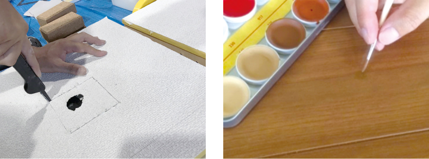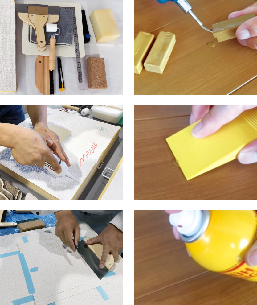 クロスの隙間や切り貼り・壁穴の補修方法と、木部のキズ補修や色合わせの基本を身につけることができます。